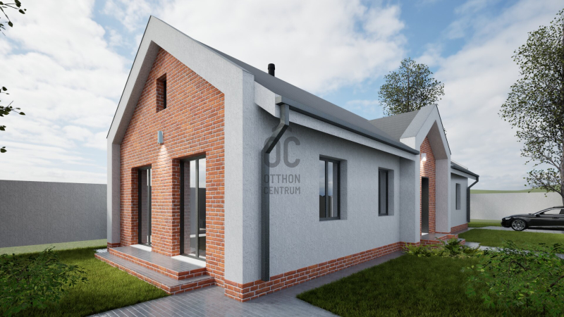 Ócsán, nyugodt, zöld környezetben, aszfaltozott utcában, saroktelken épül ez a nettó 103 m²-es (bruttó 130 m²), földszintes, önálló családi ház, hőszivattyús fűtéssel, 460 m²-es telken.