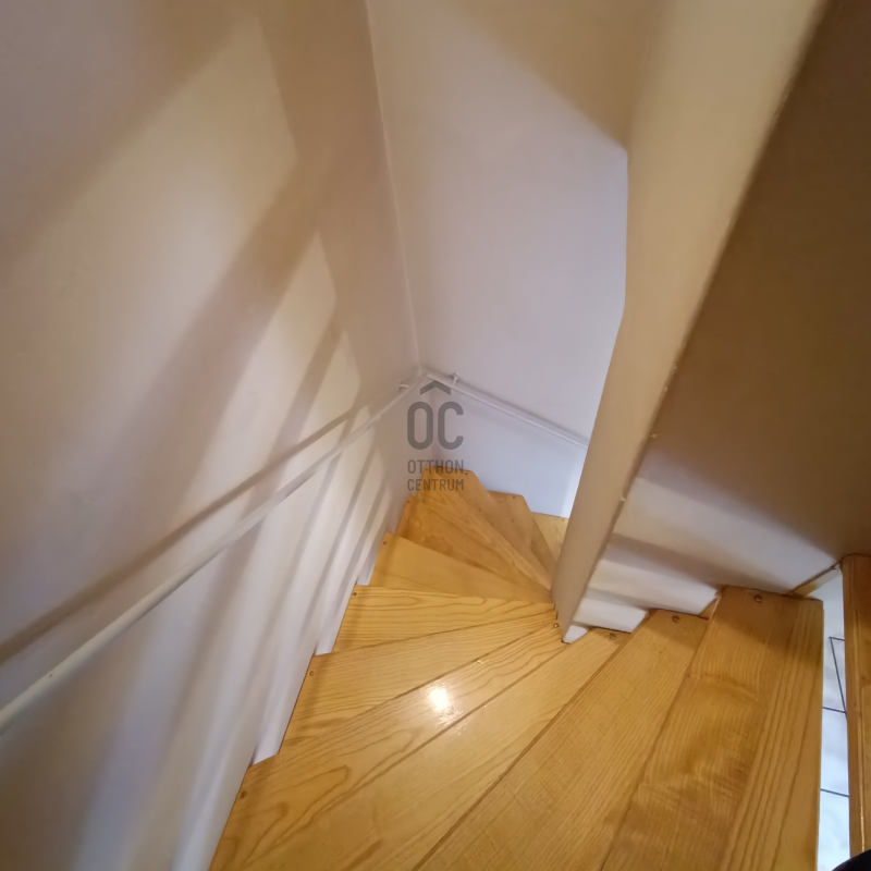 -a hátsó udvari ház: 30 m2 nagyságú: konyha-étkező-nappali, mosdó-WC került kialakításra, felső szinten hálószobával