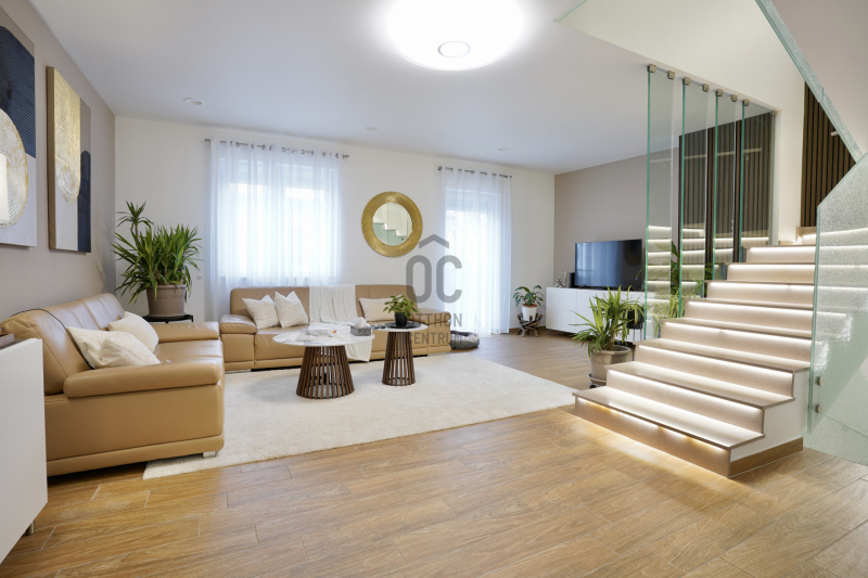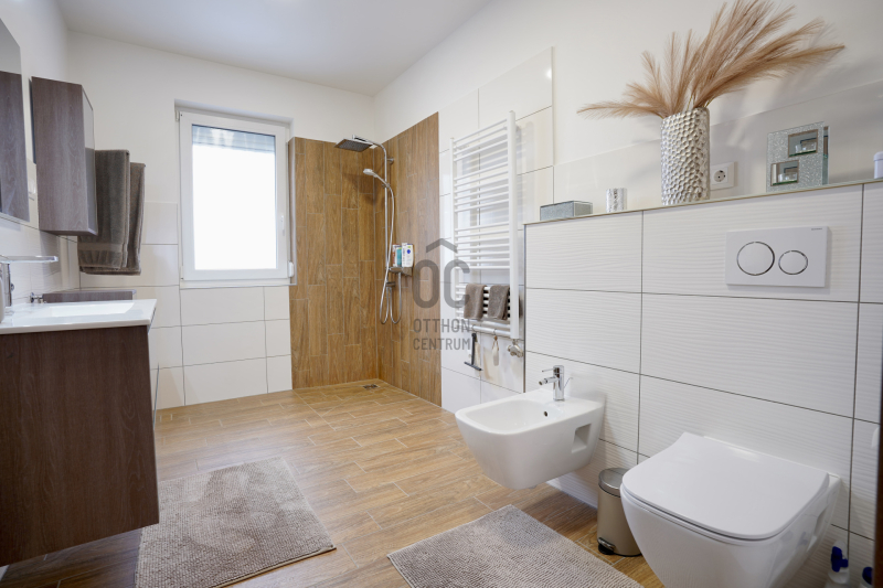 Az összesen 162 négyzetméteres lakótérrel rendelkező házhoz egy 15 négyzetméteres, fűtött garázs is tartozik, valamint egy körülbelül 40 négyzetméteres padlástér, amely kiválóan alkalmas tárolásra. Az ingatlan kialakítása átgondolt és praktikus, minden szinten világos, napfényes helyiségekkel, köszönhetően a bőséges természetes fénynek.