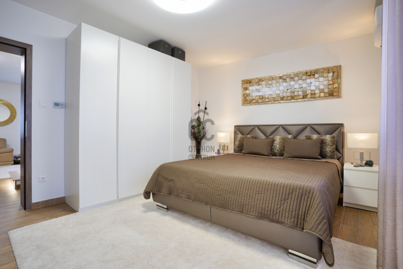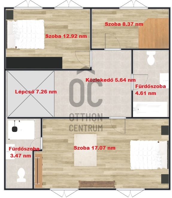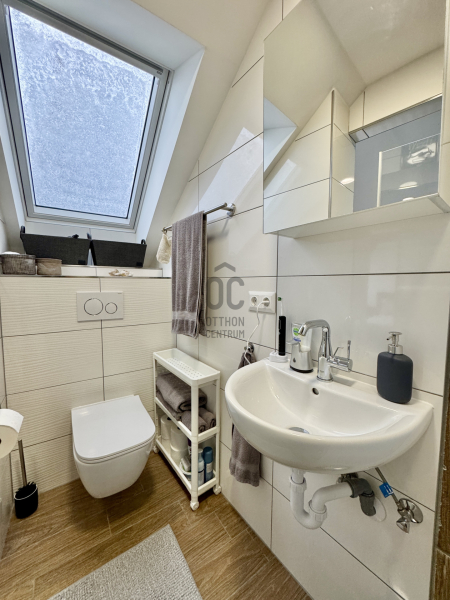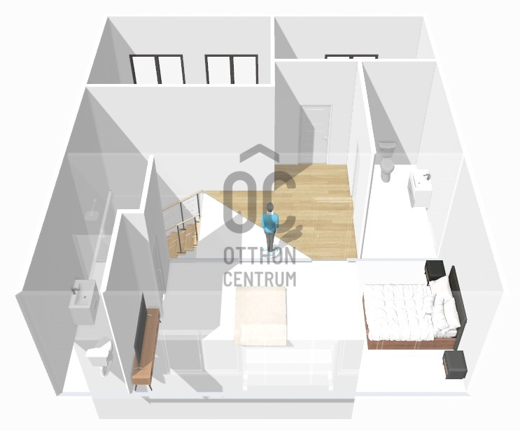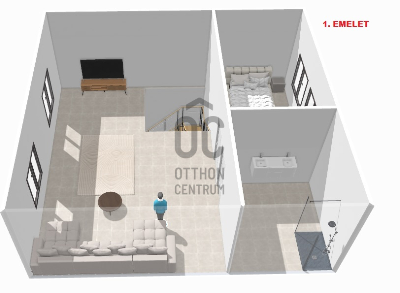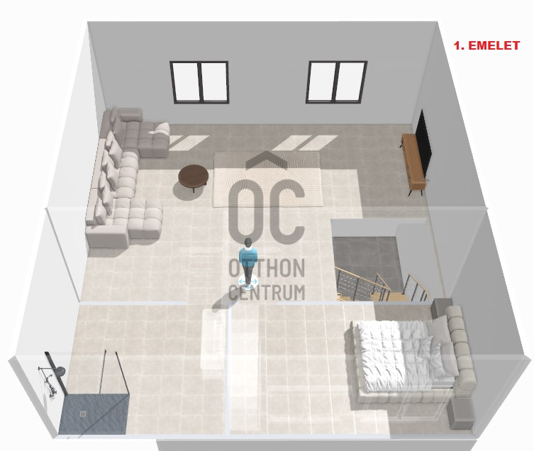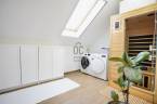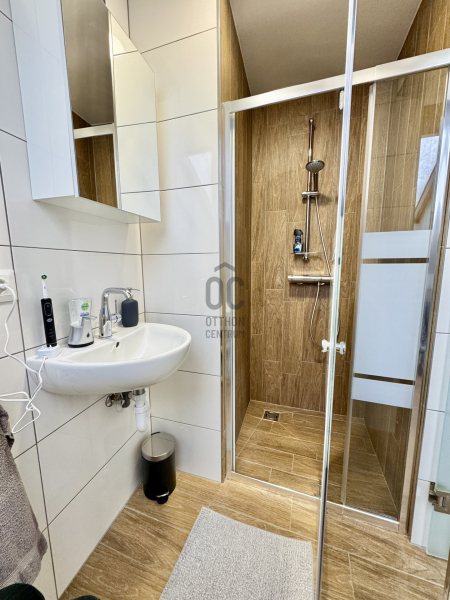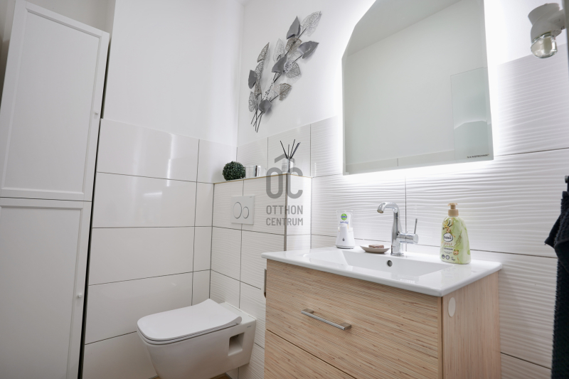 A középső szinten egy hangulatos nappali, egy erkélykapcsolatos hálószoba, valamint egy zuhanyzós fürdőszoba található WC-vel és bidével. A felső szint további két hálószobát kínál, amelyek közül az egyik jelenleg mosókonyhaként funkcionál, itt került kialakításra az infra szauna is, de igény szerint könnyedén visszaalakítható hálószobává. Ezen a szinten egy sarokkádas fürdőszoba is helyet kapott WC-vel és bidével, valamint egy elkülönített lakrész, amely egy hálószobából és egy külön zuhanyzós fürdőszobából áll, így akár vendégek vagy nagyobb család számára is ideális megoldást nyújt.