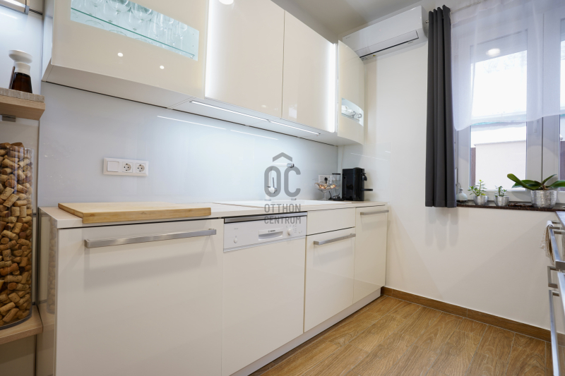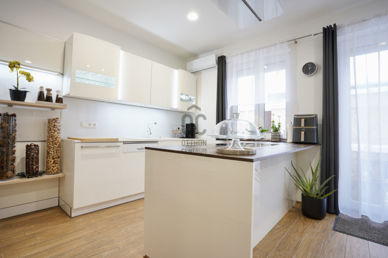 A parkolás megoldott a zárt, fűtött garázsban, valamint a ház előtt kialakított saját, privát parkolóhelyen is. Az ingatlan per- és tehermentes, a beépített bútorok a vételár részét képezik. Fenntartási költsége rendkívül kedvező, a havi gázszámla körülbelül 12.000 forint, közös költség nincs.