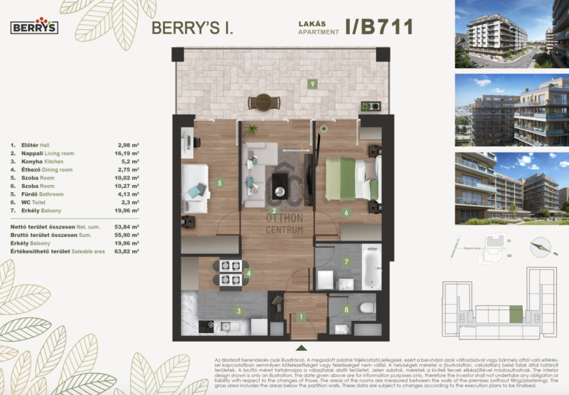 A gyönyörű kilátás nyugalma a városi nyüzsgés harmóniájával. A Berry’s minden lakásához tartozik loggia, erkély, vagy terasz!