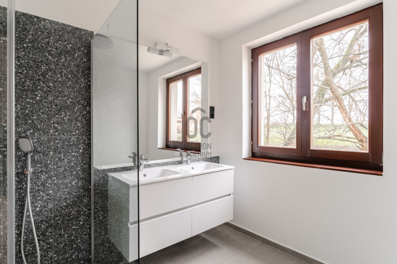 A kétszintes épület , 180 nm alapterülettel rendelkezik, a dupla telek mellett patak csörgedezik.