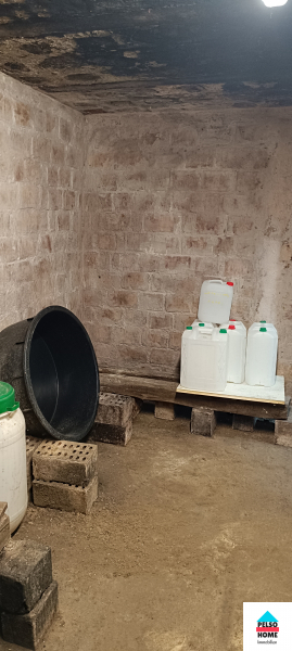 Az ingatlan tégla falazatú, masszív beton alapon áll. Villany (20A+16A), viz, és saját emésztővel ellátott... gáz a telek előtt! A hasznos alapterület 33m2, Épület 15 m2, pince 9 m2, pihenő felsőrész 9m2. A kétszintes, téglakályhával ellátott épület földszinti részén konyha, emeleti részén hálószobával, zuhanyzóval és wc-vel és külön külső lejárattal pince található.