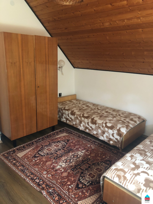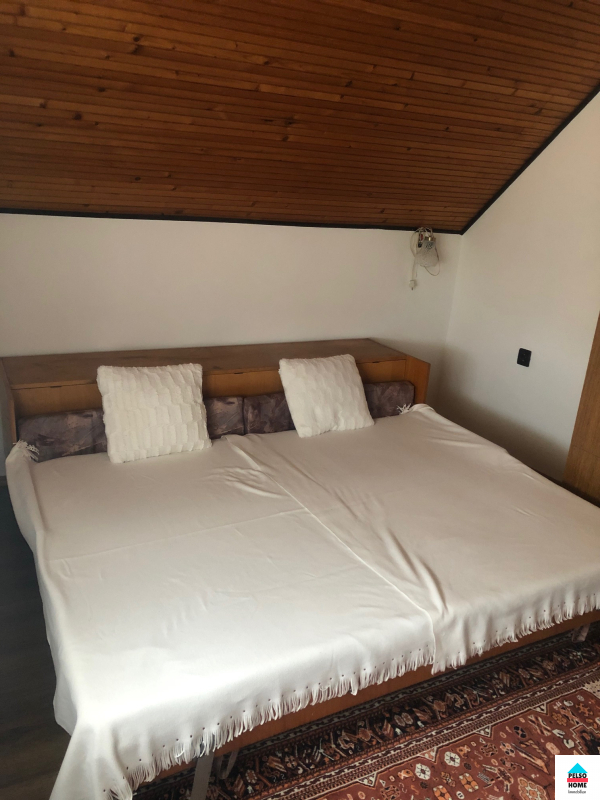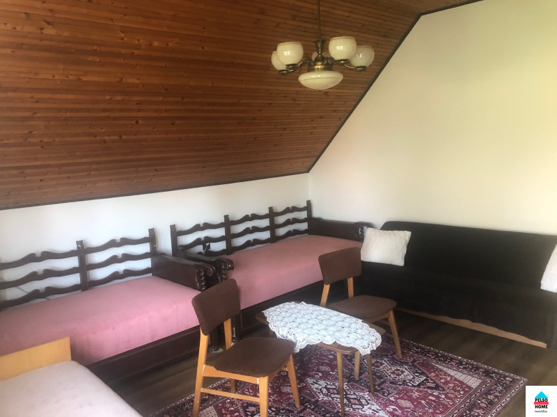 Az alsó szinten két hálószoba, nappali, konyha, étkező, fürdőszoba (káddal és zuhannyal), kamra és tároló. A felső szinten: nappali, további négy szoba amiből kettő erkélyes, fürdőszoba, konyhasarok..