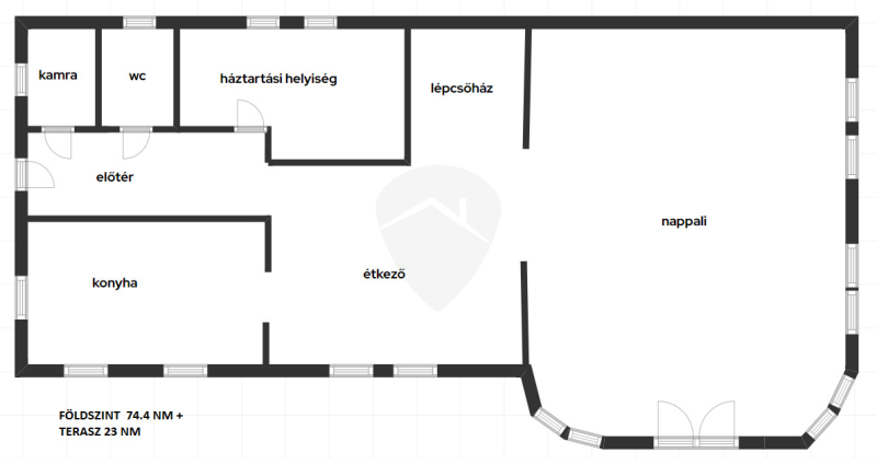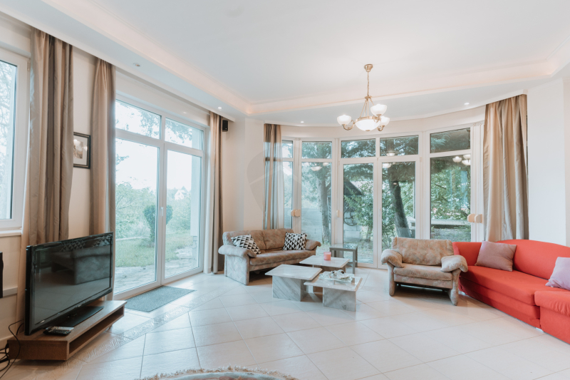 – Tágas, világos nappali-étkező (~45 m²), benne működő kandallóval