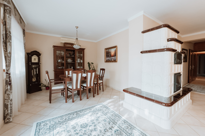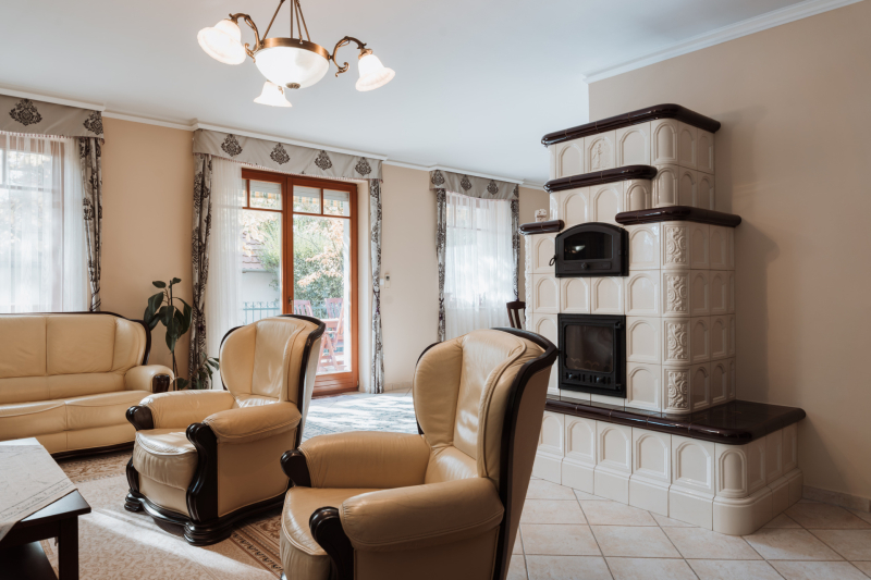 - Cserépkályha: nappaliban