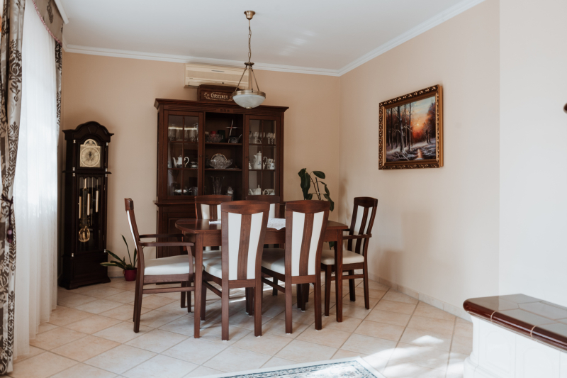 - Beépített bútorok és gépesítés: sütő, légelszívó, mosogatógép