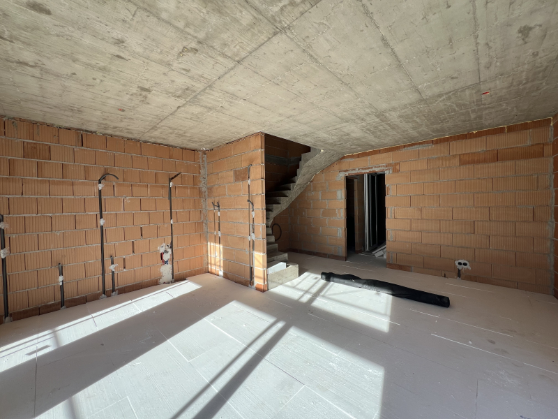 Vasbeton sávalap, POROTHERM 25 N+F vázkerámia falazat 20 cm vastagságú EPS polisztirol szigeteléssel. Lakások elválasztása hanggátló 30 cm vastagságú POROTHERM Aku Z vázkerámia falakkal történik. Válaszfalak POROTHERM 10 N+F cm vastagságú vázkerámia falazóelemekből készülnek. Zárófödém: kőzetgyapot vagy fújt PUR 15 cm közötti vastagságban szarufák között.