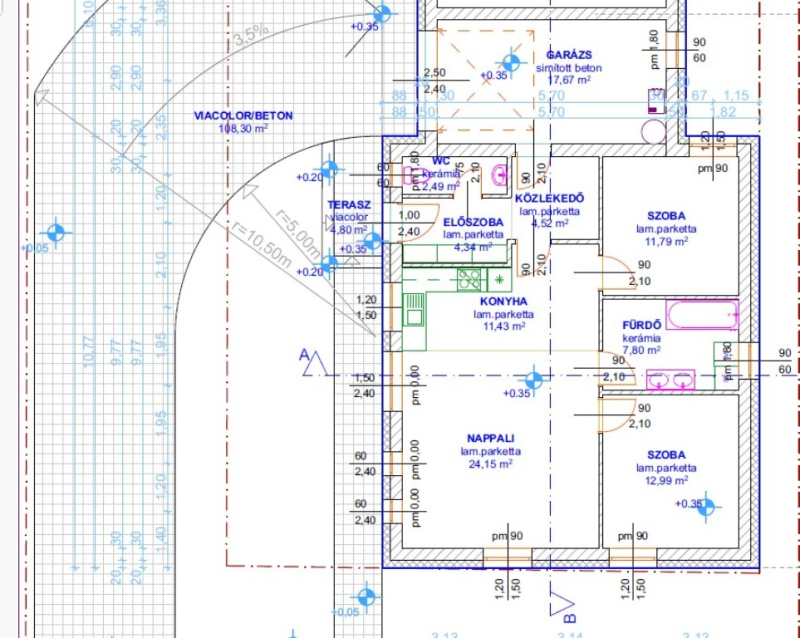 Vasbeton sávalap, Rapid X-Therm PTH 30CM tégla főfalak 20 cm-es dryvit hőszigeteléssel. Műanyag homlokzati nyílászárók 3 rétegű üveggel. Beton födém 20 cm ásványszálas hőszigeteléssel. Fűtés és meleg víz hőszivattyúról, mindenhol padlófűtés . Antracit beton cserép héjazás. Festés, burkolás, szaniterek, belső ajtók választhatók. A hideg burkolatok 7000 Ft./m2 árig , meleg burkolatokat 4500 Ft./m2 árig, a belső ajtókat 50.000 Ft./db. árig tartalmazza a vételár. Riasztó vezetékelve, klíma becsövezése, rejtett redőnytok kialakítás,alumínium redőnyök fehér színben, elektromos kiállások a redőnynek , elektromos kiállás a kapuknál. H tarifa kiépítve, kocsibeálló viacolor (10x20-as) szürke, kiskaputól bejáratig Viacolor (10x20-as) szürke, a ház körül 40 cm széles védőjárda szegélykőből, közé apró kaviccsal betöltve.