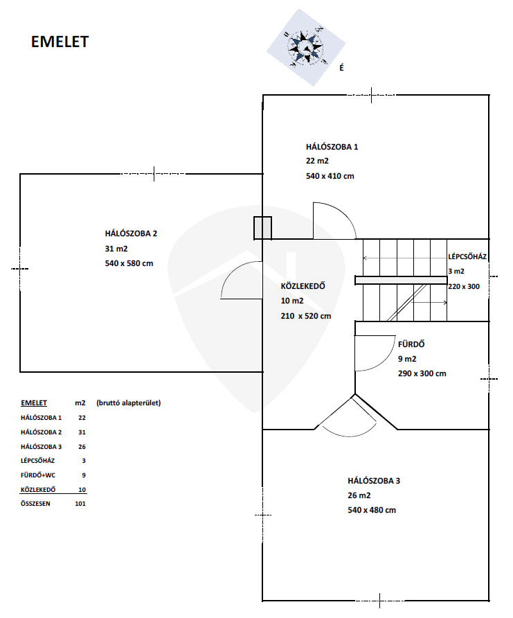 • 3 nagyméretű szoba, melyek közül az egyik jelenleg két külön szobára lett osztva