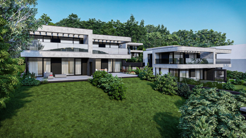 A telken 8 ikervilla kerül felépítésre, melyek mindegyikéhez sajáthasználatú kertrész valamint akár 3 autó parkoltatására alkalmas saját használatú önálló garázs is tartozik.