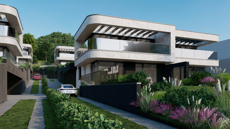 A telken 8 ikervilla kerül felépítésre, melyek mindegyikéhez sajáthasználatú kertrész valamint akár 3 autó parkoltatására alkalmas saját használatú önálló garázs is tartozik.