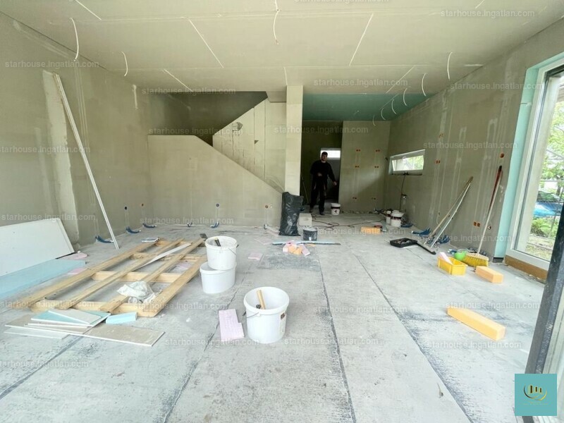 A ház kívülről a színezésen kívül készen van. Belső munkák folynak jelenleg.