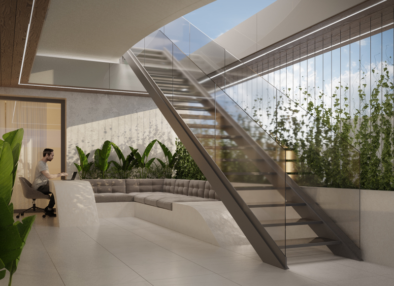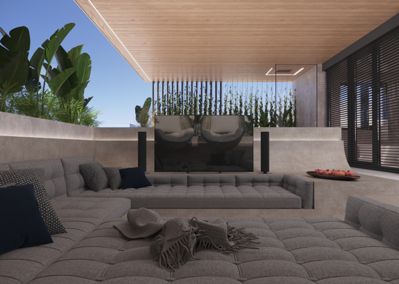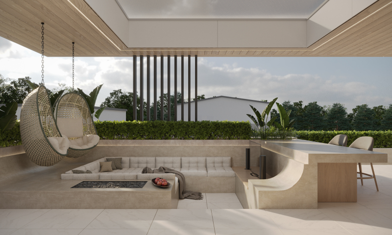 Az ottlakók kényelmét szolgálva egy hatalmas oldasó terasz valamint 2 nagyméretű napozó tetőterasz került kialakításra, melyekről csodálatos panoráma nyílik a közeli erdőre, valamint a lakóparkban található tóra is.