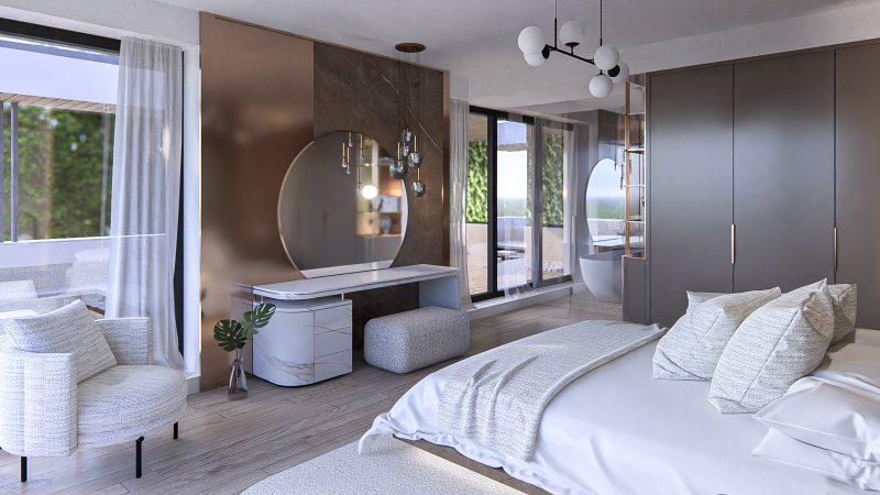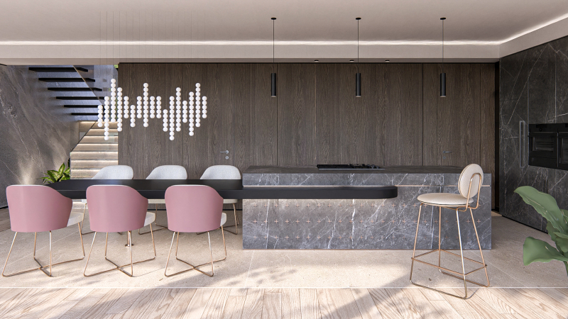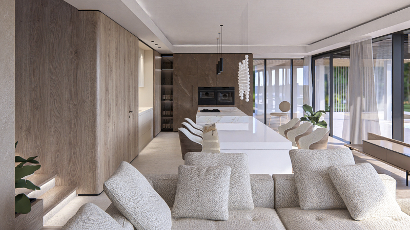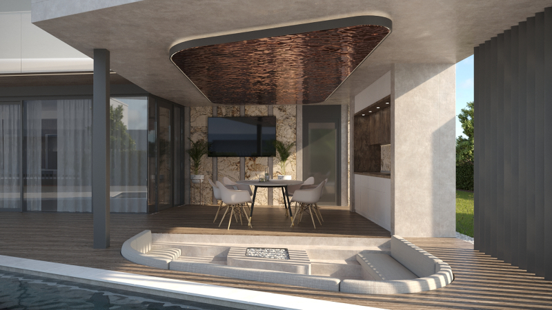 A ház egyedi igények alapján lett megtervezve, melynek megálmodásakor nagy hangsúlyt fektettek a terek maximális kihasználtságának meglétére, az innovatív megoldásokra, valamint a luxus életérzés kialakítására.