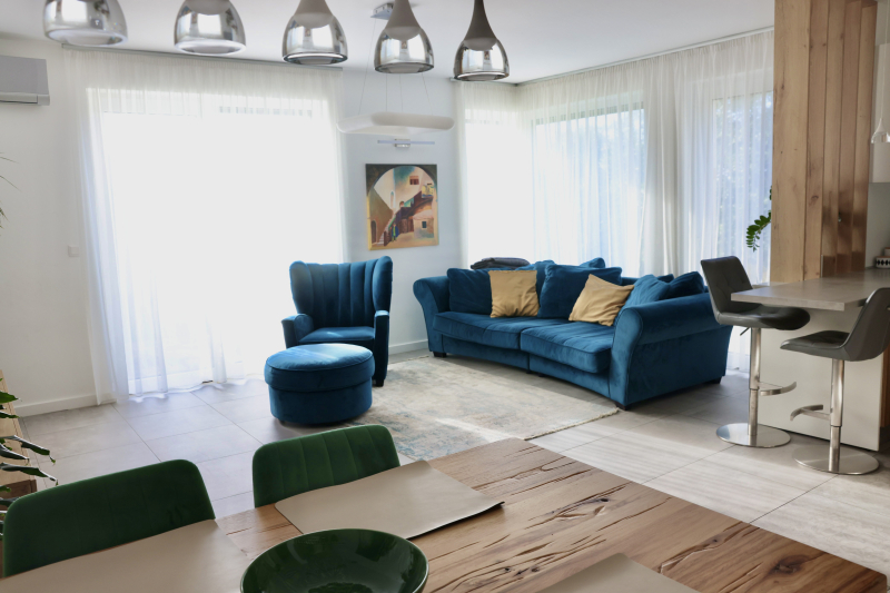 A ház különlegessége a teljes értékű modern műszaki felszereltség, a hatalmas teraszok, a