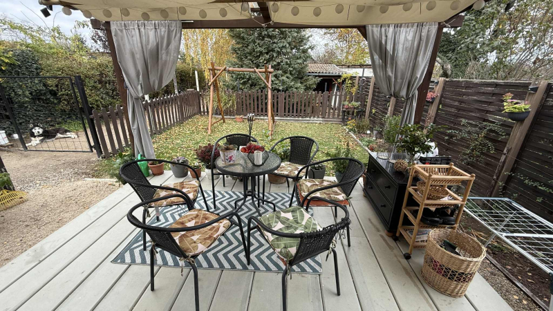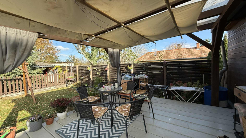 A kert nagyobb része zárt,melléképülettel,garázs kialakítása lehetséges.