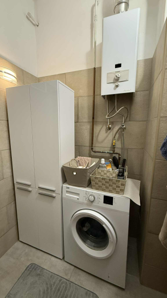 Fűtése konvektorral és kandallóval megoldott.