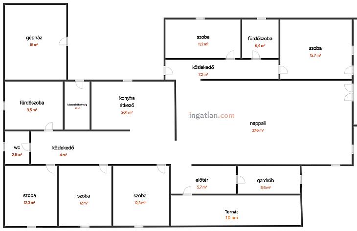 - Plusz egy 20 nm-es terasz, egy 10 nm-es veranda, és egy 18 nm-es kazánház.