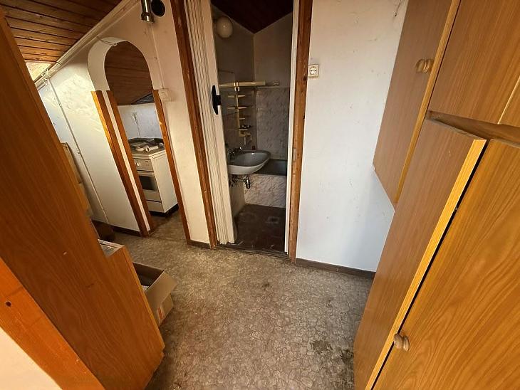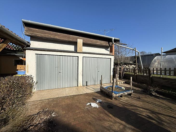 A házhoz tartozik egy szerelőaknás, kétállásos garázs is, mely fölött található egy 18 négyzetméteres, felújítandó kis lakás is.