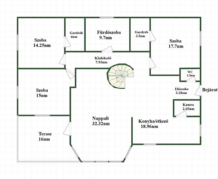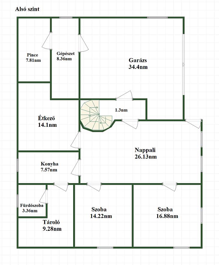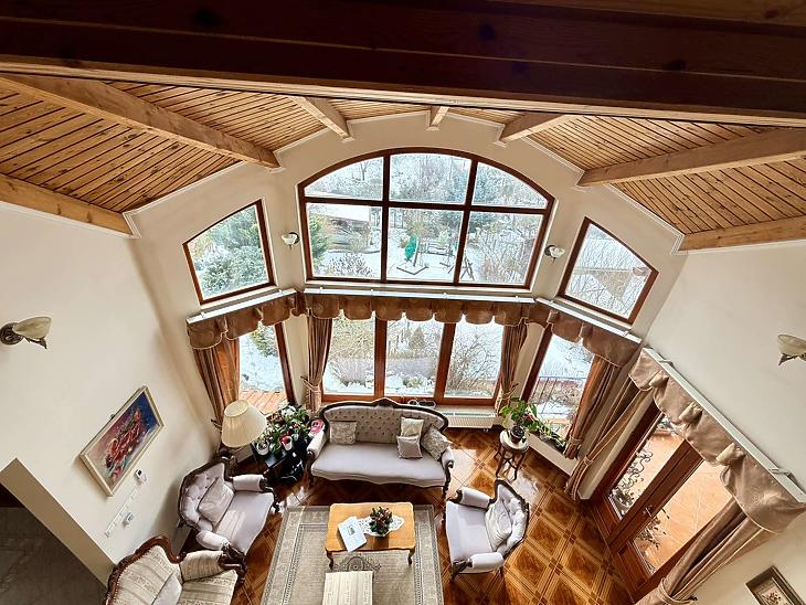 A 350 nm-es, világos és jól átgondolt elosztású családi ház több szinten biztosít kényelmes életteret. A földszinten két szoba, tágas nappali, konyha, étkező, fürdőszoba, tároló és gépészeti helyiség található, valamint pince és egy kétállásos garázs. Az emeleten előszoba, három hálószoba, amerikai konyhás nappali, amelyből nyílik a panorámás terasz, valamint fürdőszoba és külön WC kapott helyet, míg a tetőtérben egy további szoba került kialakításra.