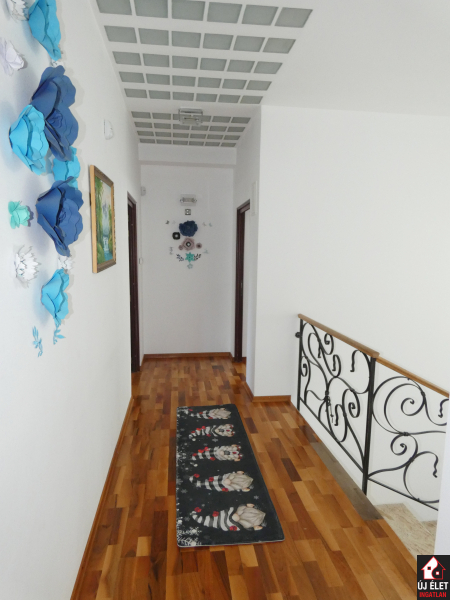 A 2008-ban elkészült házban 3 szint épült: földszint (150 m2 + 58 m2 terasz), emelet (125 m2 + összesen 37 m2 es terasz és erkélyek) és az alagsor (150 m2).