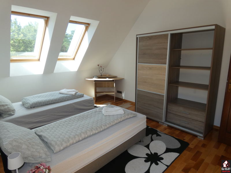 A parkosított, locsolórendszerrel rendelkező kertben egy KIS TÓ csobogóval, tavirózsákkal, aranyhalakkal és egy SZÖKŐKÚT is található.