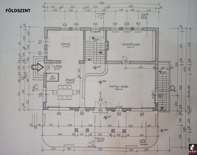 A FÖLDSZINTEN a dolgozó szobát és a wc helyiséget leszámítva minden egy légtérben van, azaz majdnem 120 m2-en kapott helyet a nappali, az étkező és a konyha. Mindez körben hatalmas üvegfelületekkel, illetve részben olyan eltolható ajtókkal, aminek köszönhetően össze nyithatjuk a teret a terasszal. ...és a terasz túloldalán csobbanhatunk a FŰTHETŐ MEDENCÉBE (1,5-2 méter mély, 75 m3-es).