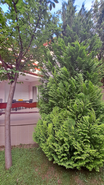 A telek mérete 500 nm, így a kertben bőségesen van hely a pihenésre és a szórakozásra.
