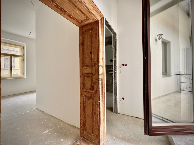 A lakás teljes körű műszaki és esztétikai megújuláson esett át, miközben az épület megtartotta műemléki értékeit.