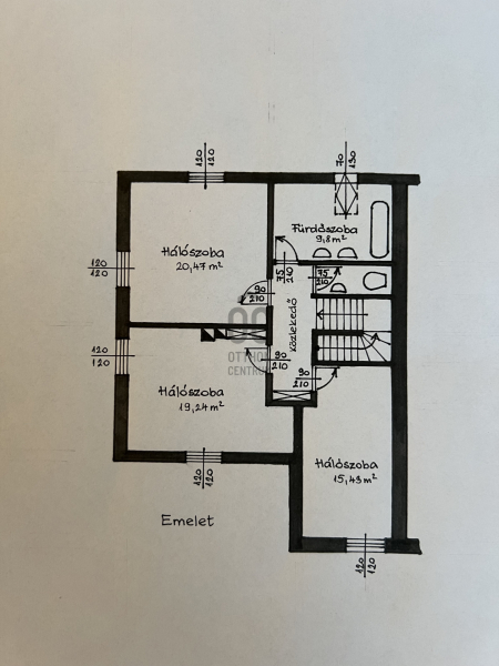 - emelet: 3 külön nyíló hálószoba, külön WC és fürdő