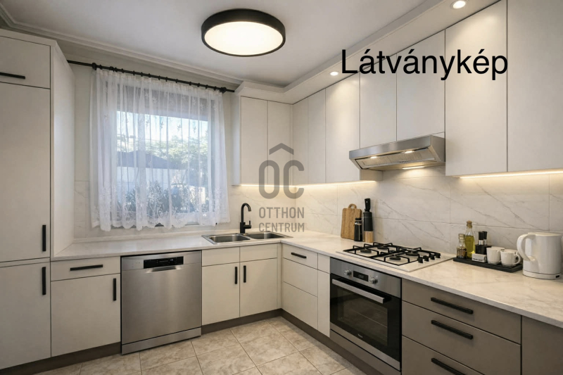 - teljesen felszerelt konyha + beépített szekrények az árban