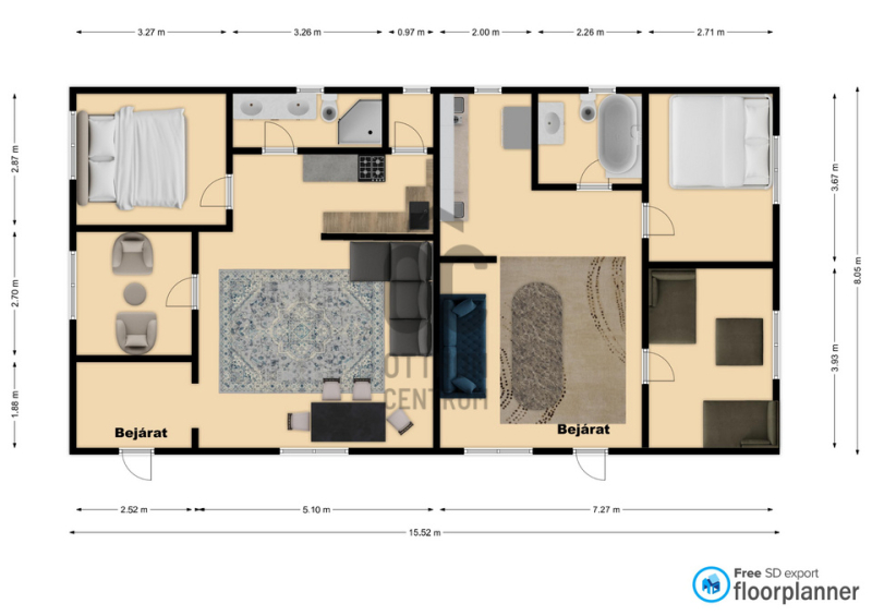 ✅ vagy akár úgy, hogy az egyik részben a tulajdonos lakik, a másik bevételt termel