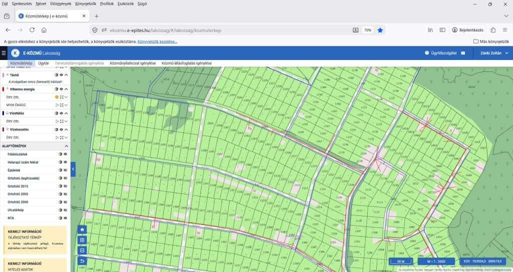 Víz telken belül. áram az utcában a telkek közelében, a két telek körbe volt kerítve, de a kerítés javítandó állapotú.A telek jelenleg bokrokkal benőtt, gazos, megközelítéséhez rossz időben összkerekes jármű kell.