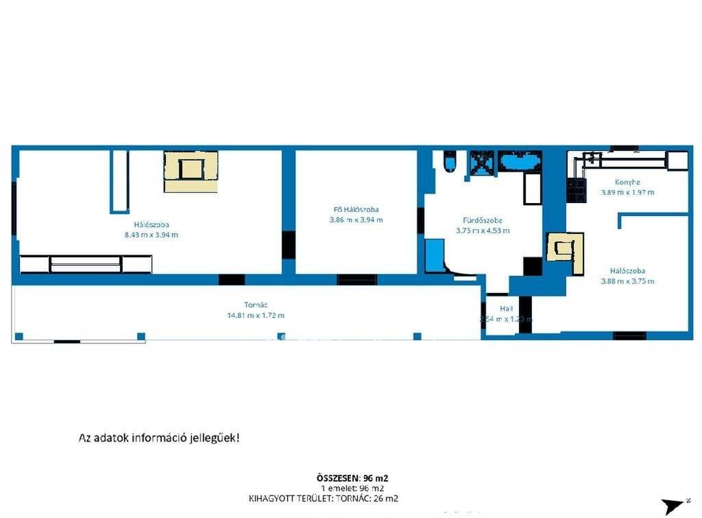 A ház két bejárattal rendelkezik, így akár két generáció számára is jól használható, vagy külön funkciókra osztható. A fürdőszoba kialakítása különösen praktikus, tágas és több irányból megközelíthető. A telek két utcáról is elérhető, ami ritka és kifejezetten előnyös adottság.