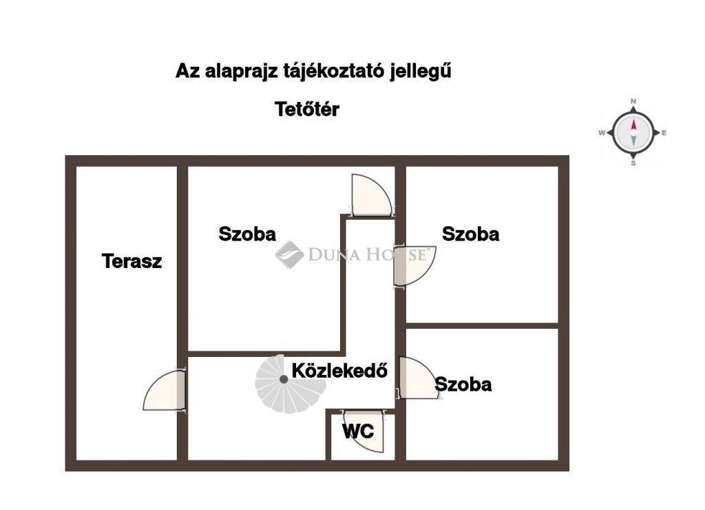 A házban a földszinten található egy étkezős konyha, egy nappali, egy kis szoba és egy fürdő. A tetőtérben három szoba, erkéllyel,és egy WC kapott helyet.
