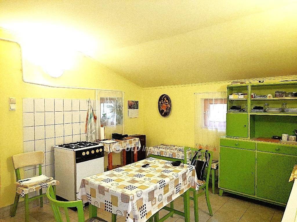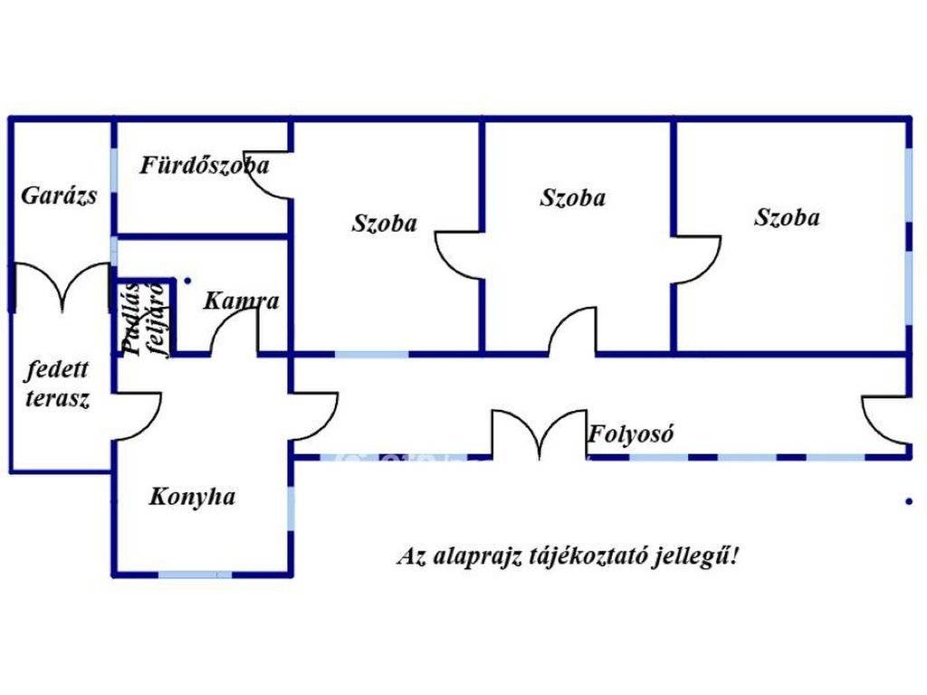 A házban 3 nagy szoba, konyha, közlekedő, kamra, fürdőszoba wc-vel, és padlásfeljáró helyiségek találhatóak.