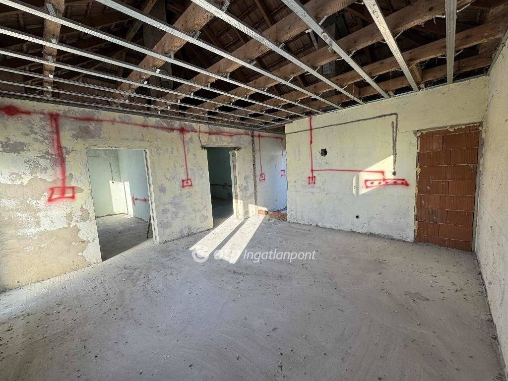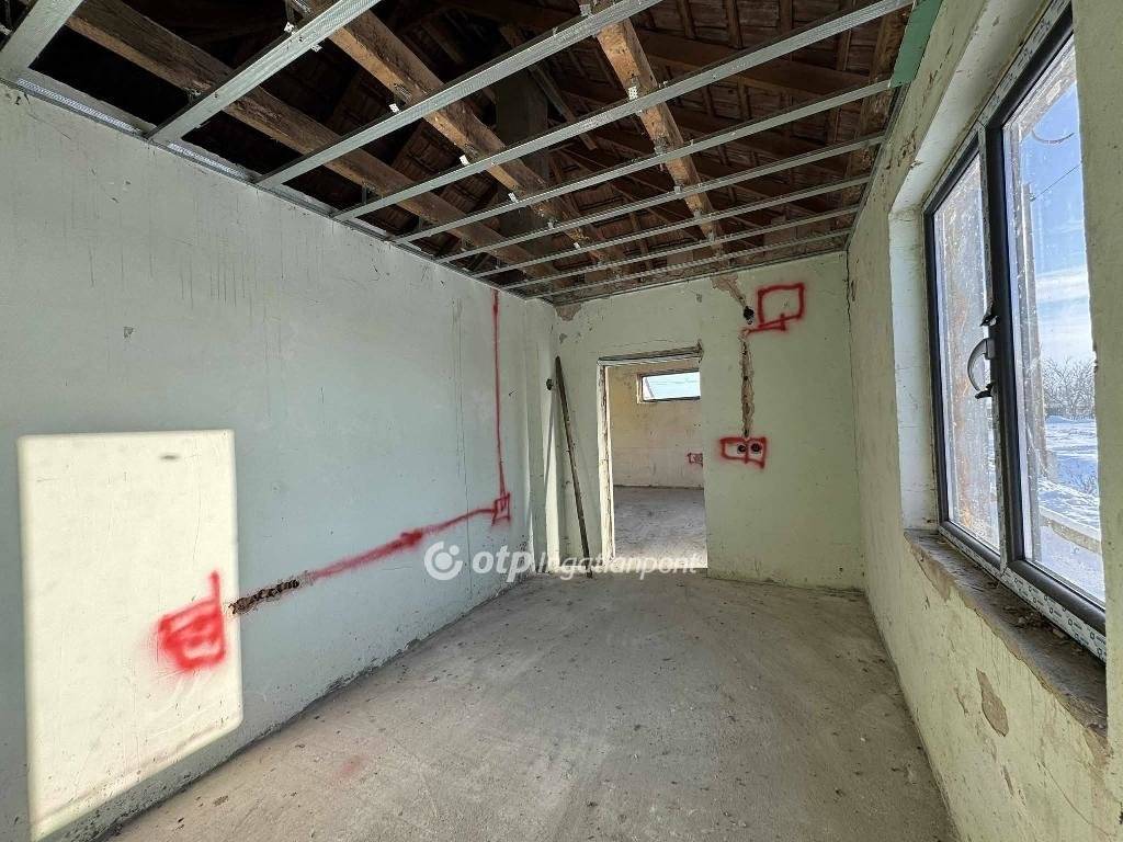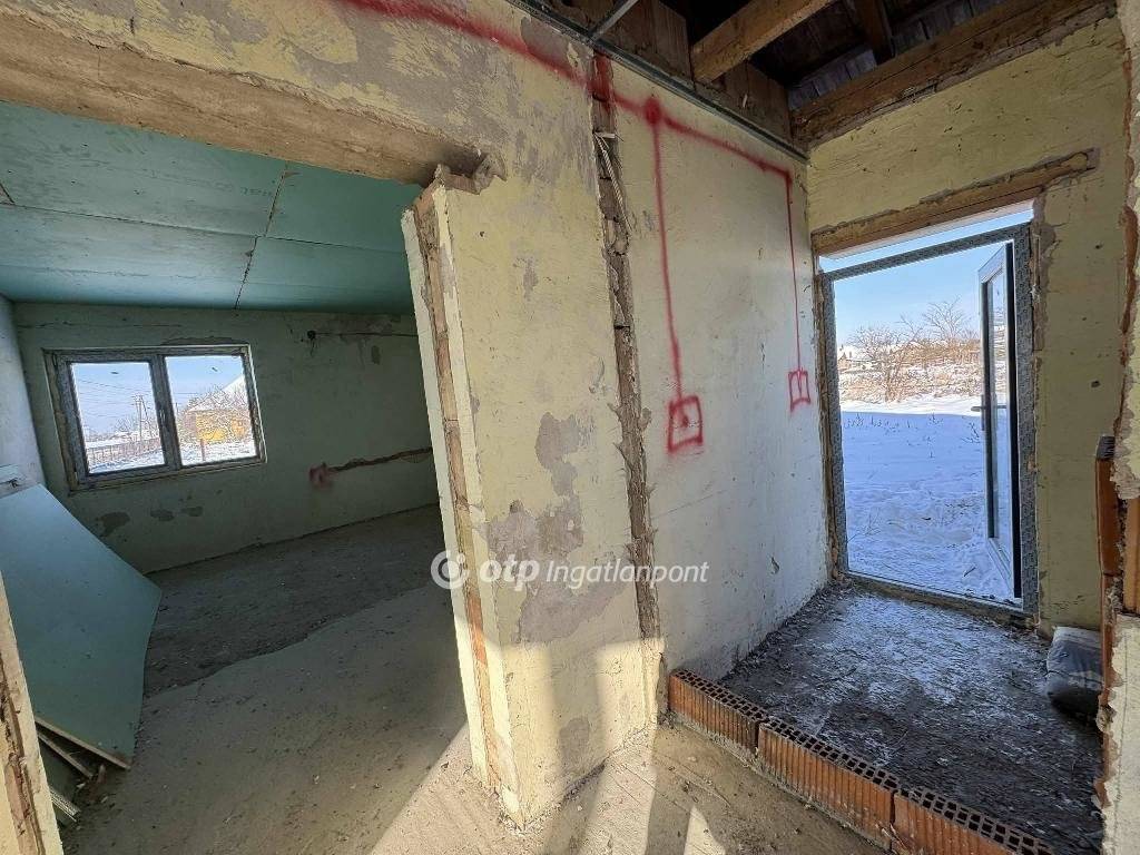 Az 59 négyzetméteres ház szinte készen van, de mivel nem lett még befejezve a folyamat TELEKKÉNT értékesítendő, illetve a tulajdoni lapon is így jelenik meg.