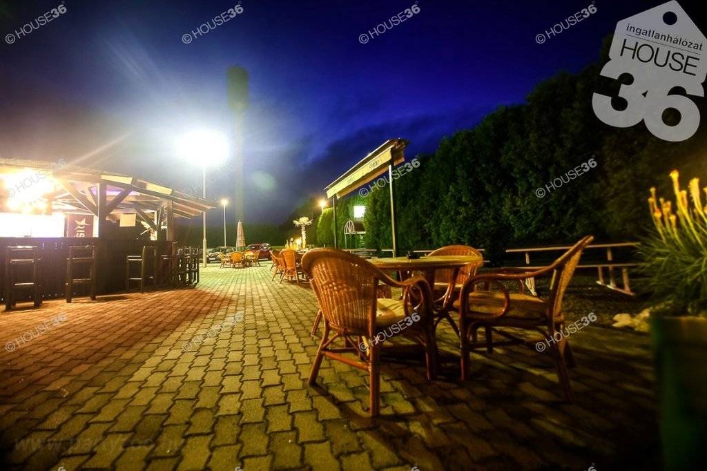 Külterület, szórakoztató központként nyilvántartva, 3818 m², 45%-ban beépíthető, teljesen körbekerített, gondosan kialakított külső terek, elektromos kapu, térkövezett vendégtér, parkosított zöldfelület