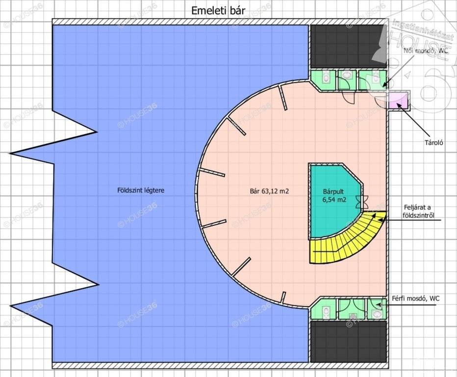 Főépület: 540 m² földszint + 90 m² emeleti bár,7,15 m belmagasság, szellőztető rendszer, 7 klíma, disco csarnok, büfé, ruhatár, mosdók, iroda, italraktár, külső bár + 80 m² melléképület (garázs/raktár/minigarzon), teljes közmű: 3×40 Amper, víz, szennyvíz, gázcsonk, biztonság: mozgásérzékelők, kamerarendszer