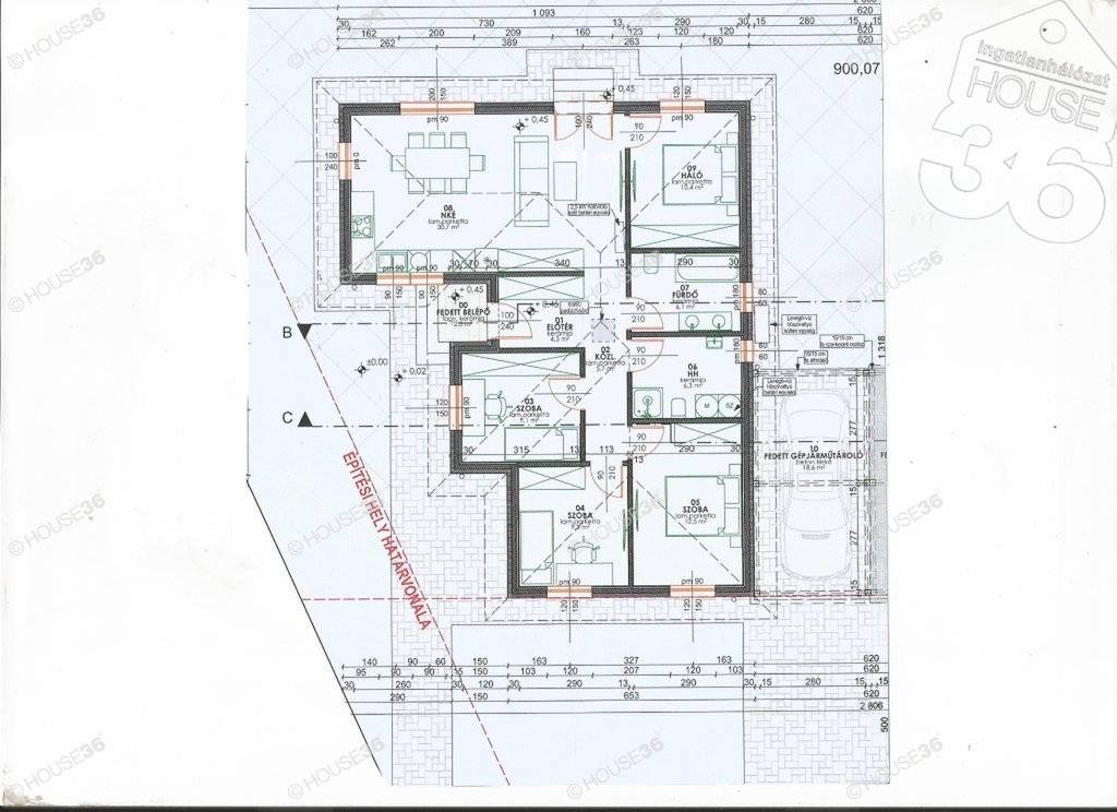 - fedett gépkocsi beálló 18,6 m2