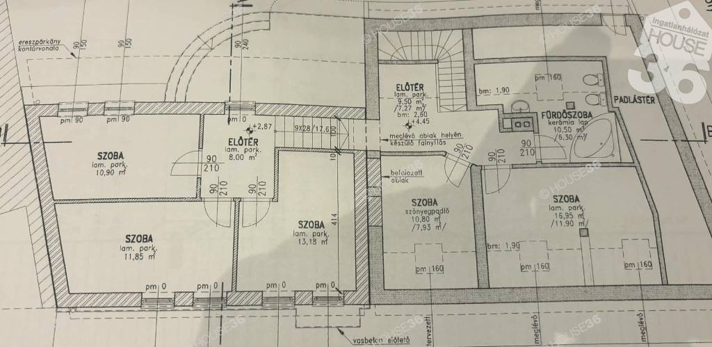 A 277 m²-es telken álló ingatlan eredeti, polgári része megőrizte a stílusra jellemző nagyvonalú belmagasságot, amely már az alsó szinten tágas, levegős és ragyogóan világos tereket teremt. Ez az elegáns térélmény különleges értéket ad a háznak.