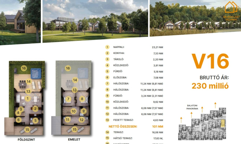 Levegős hőszivattyú (VRV splitklíma), 2,5 kW napelem rendszer, elektromos redőny, szúnyogháló, beépített bútorok, homlokzati díszvilágítás.