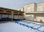 A kertkapcsolatos ikerházban motoros redőnyök és okos otthon rendszer található, amelyek a kényelmet és a biztonságot szolgálják. Az automata öntözőrendszer pedig megkönnyíti a kert karbantartását, amelyhez egy praktikus kerti tároló is tartozik.