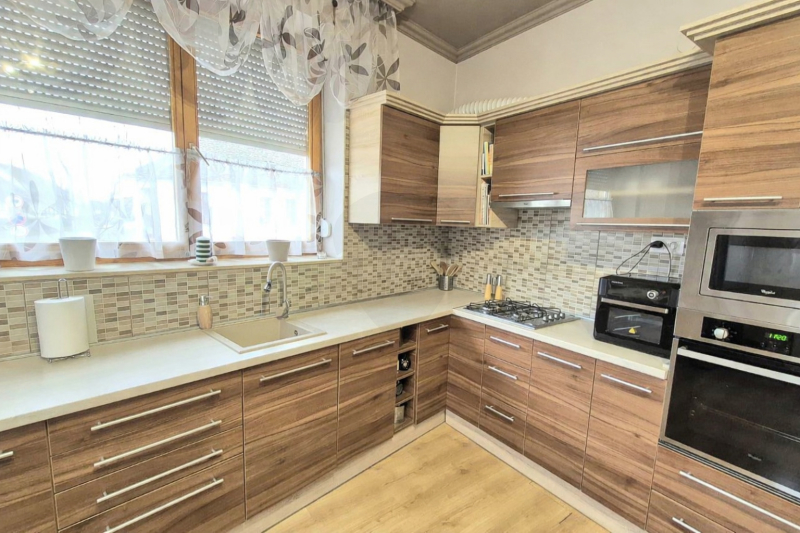 A szobák laminált burkolattal rendelkeznek, a ház állapota kiváló. Műszaki felszereltségét tekintve az ingatlan 12 cm-es vastagságban hőszigetelt, hőszigetelt fa nyílászárókkal, új kondenzációs gázkazánnal, valamint riasztórendszerrel ellátott, ami energiatakarékos és biztonságos működést garantál.