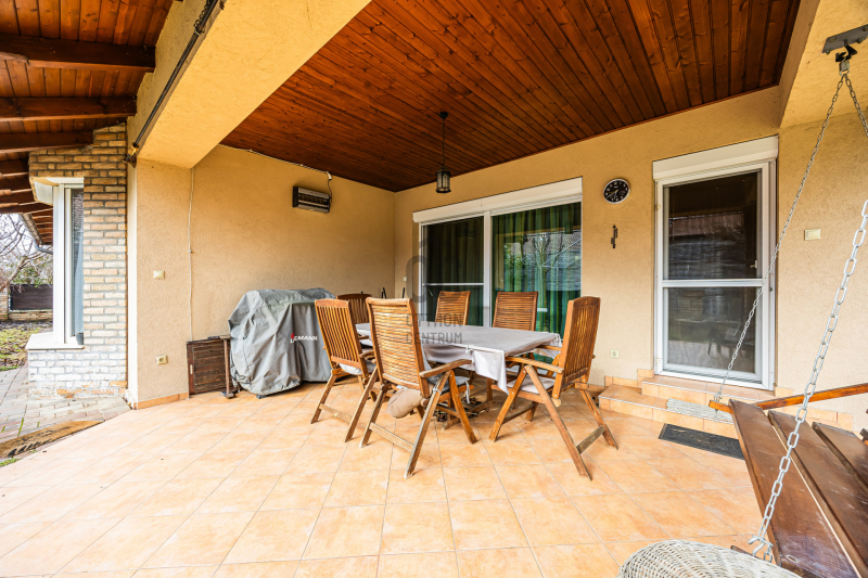 - Az ingatlanhoz tartozik egy 16 nm-es terasz is, amely a nyári estéken kellemes pihenést kínál, miközben a rendezett kertben élvezheti a természet közelségét.