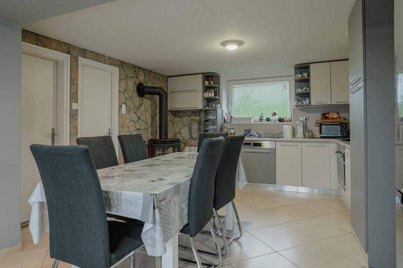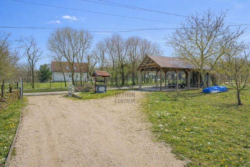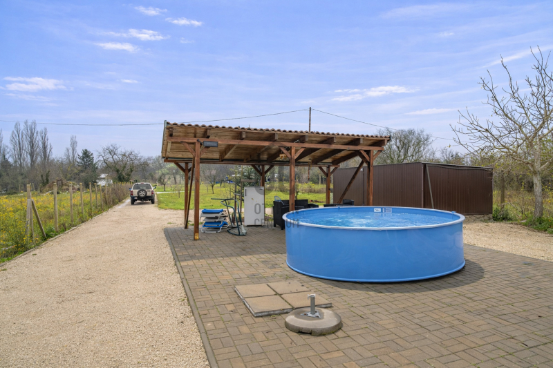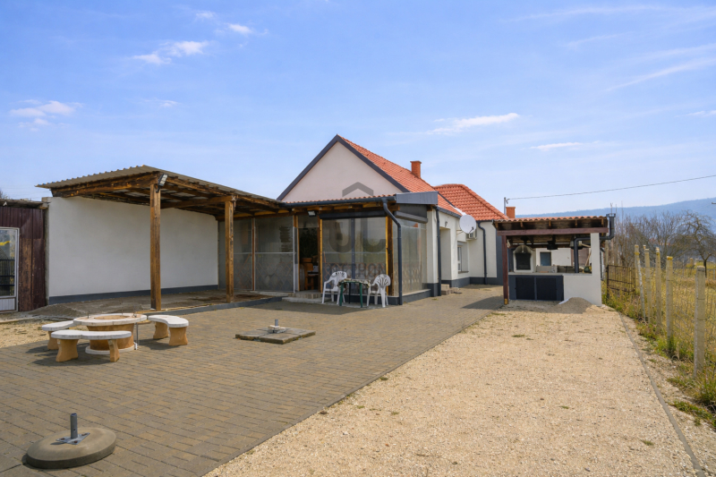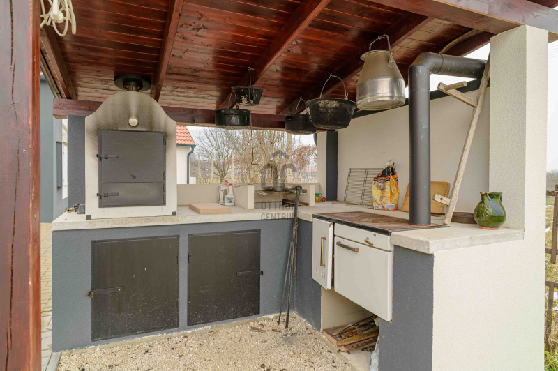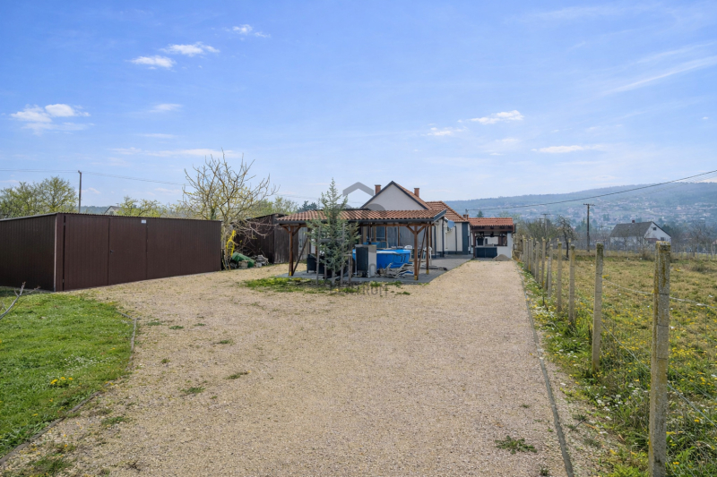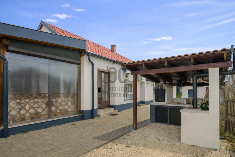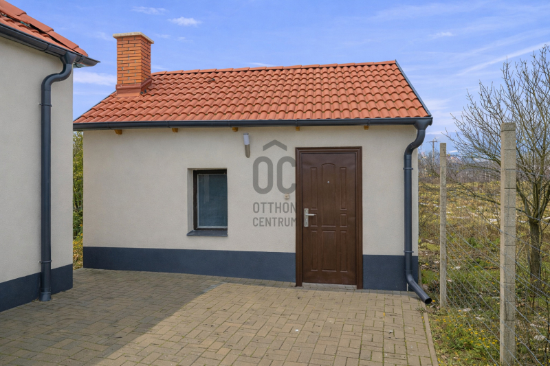 A főépület 73 m² hasznos alapterületű, melyet egy 9,5 m²-es különálló kisház, egy 20m2-es fedett terasz, egy 19m2-es fedett lakóautó tároló és egy 19m2-es pince egészít ki. A 2373 m²-es, sík telek igazi zöld oázis: gondozott, sok gyümölcsfával, kúttal ellátott, teljesen körbekerített, elektromos kapuval.