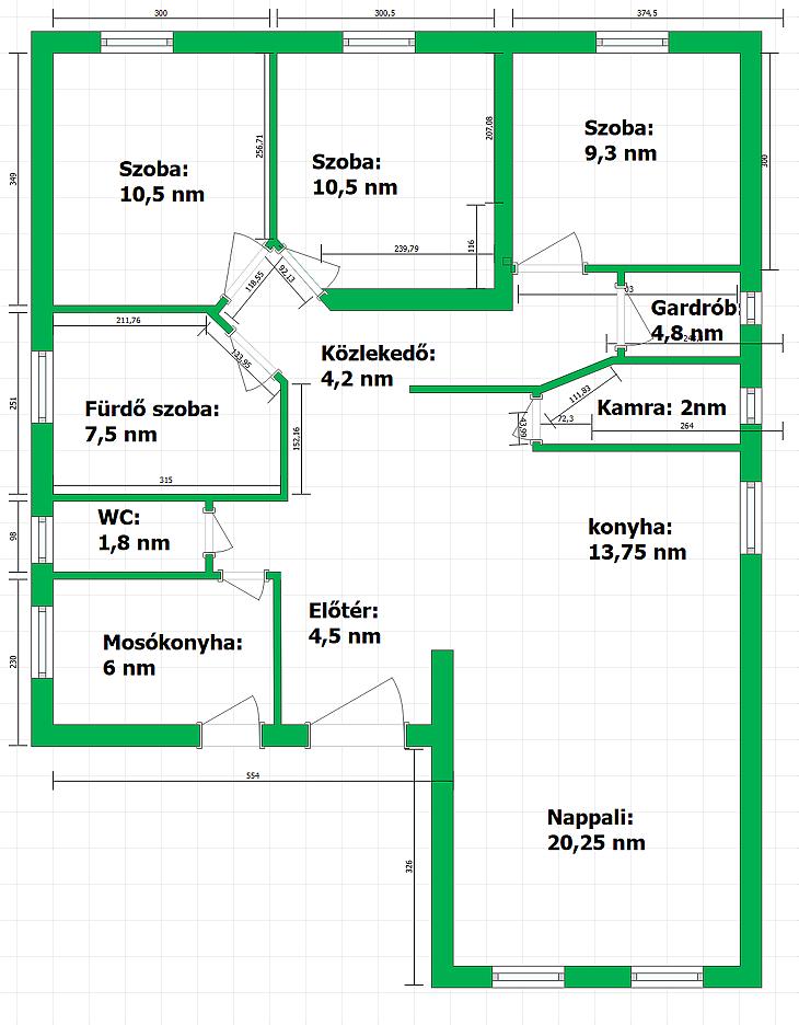 Az elosztás praktikus: Amerikai konyhás nappali, három hálószoba, külön fürdő és WC, mosókonyha, gardróbszoba és kamra.
