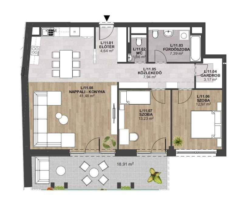 - lakások alapterülete 39 nm - 120 nm közötti, melyek legtöbbjeihez különböző méretű terasz tartozik